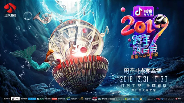 用奋斗点亮幸福!抖音短视频2019江苏卫视跨年演唱会将于2018年12月31日19:30在澳门金光综艺馆进行全球直播。这是继2017年“17聚幸福”跨年演唱会之后,江苏卫视再度与澳门亲密相约。在即将迎来澳门回归祖国20周年的特殊节点,江苏卫视将一如既往的以最大的诚意为所有观众带来一场兼具正能量和品质感的视听盛宴。